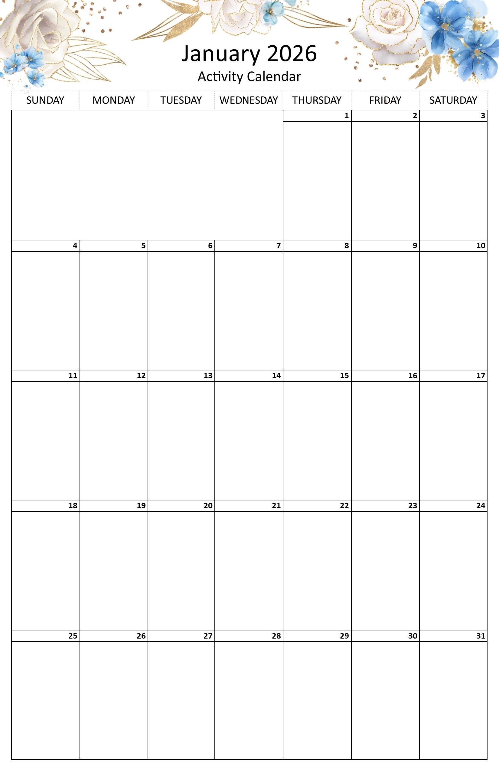 Blank January 2026 Calendar Printable PDF Templates