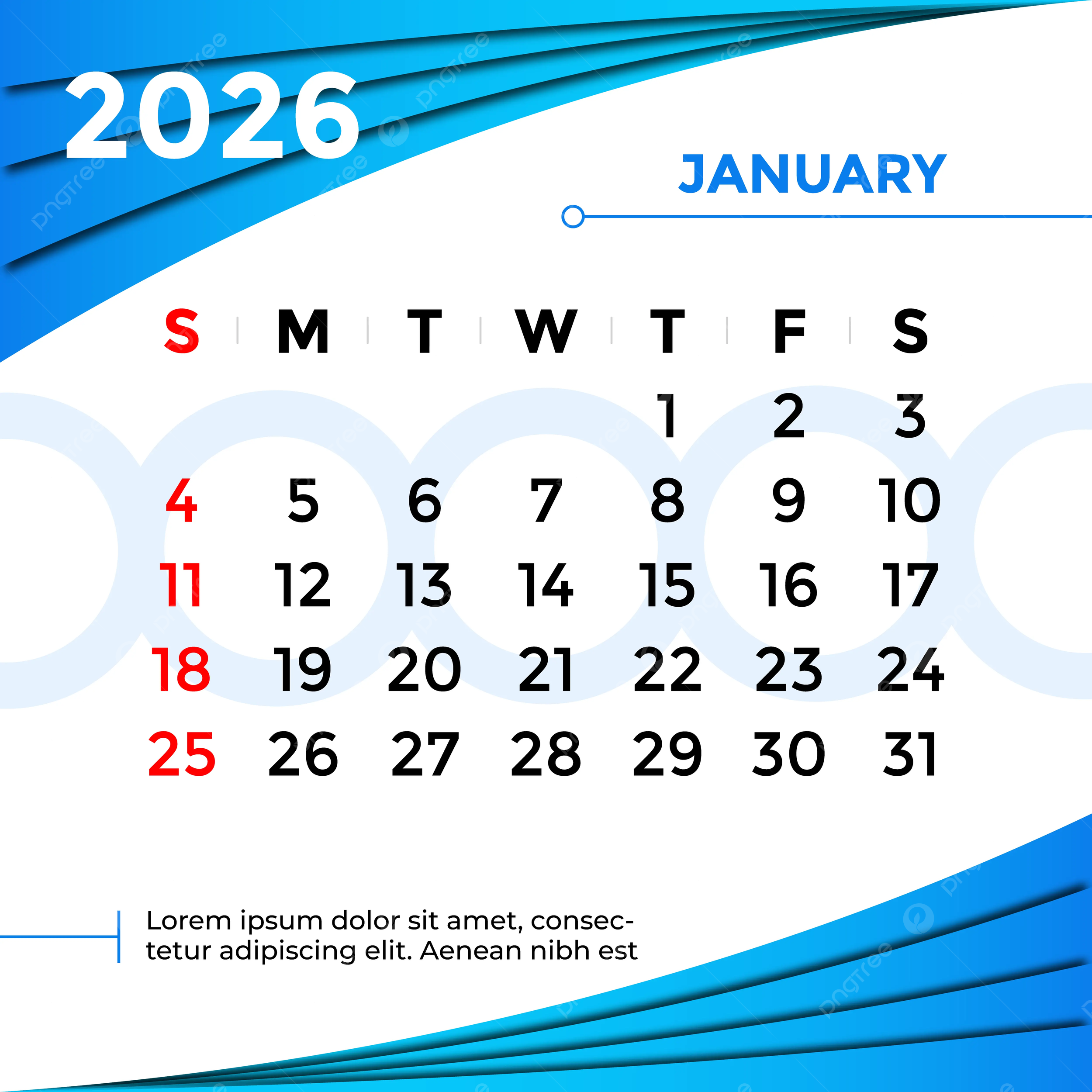 2026 January Month Calendar Vector Template Download On Pngtree