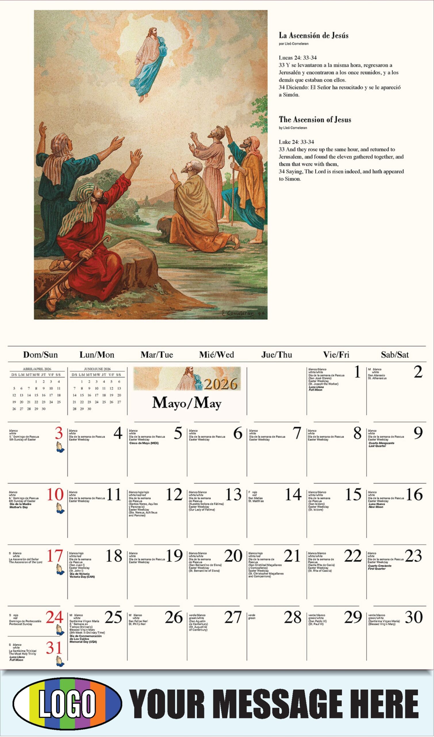 2026 Promotional Calendar Catholic Art Bilingual Low As 65