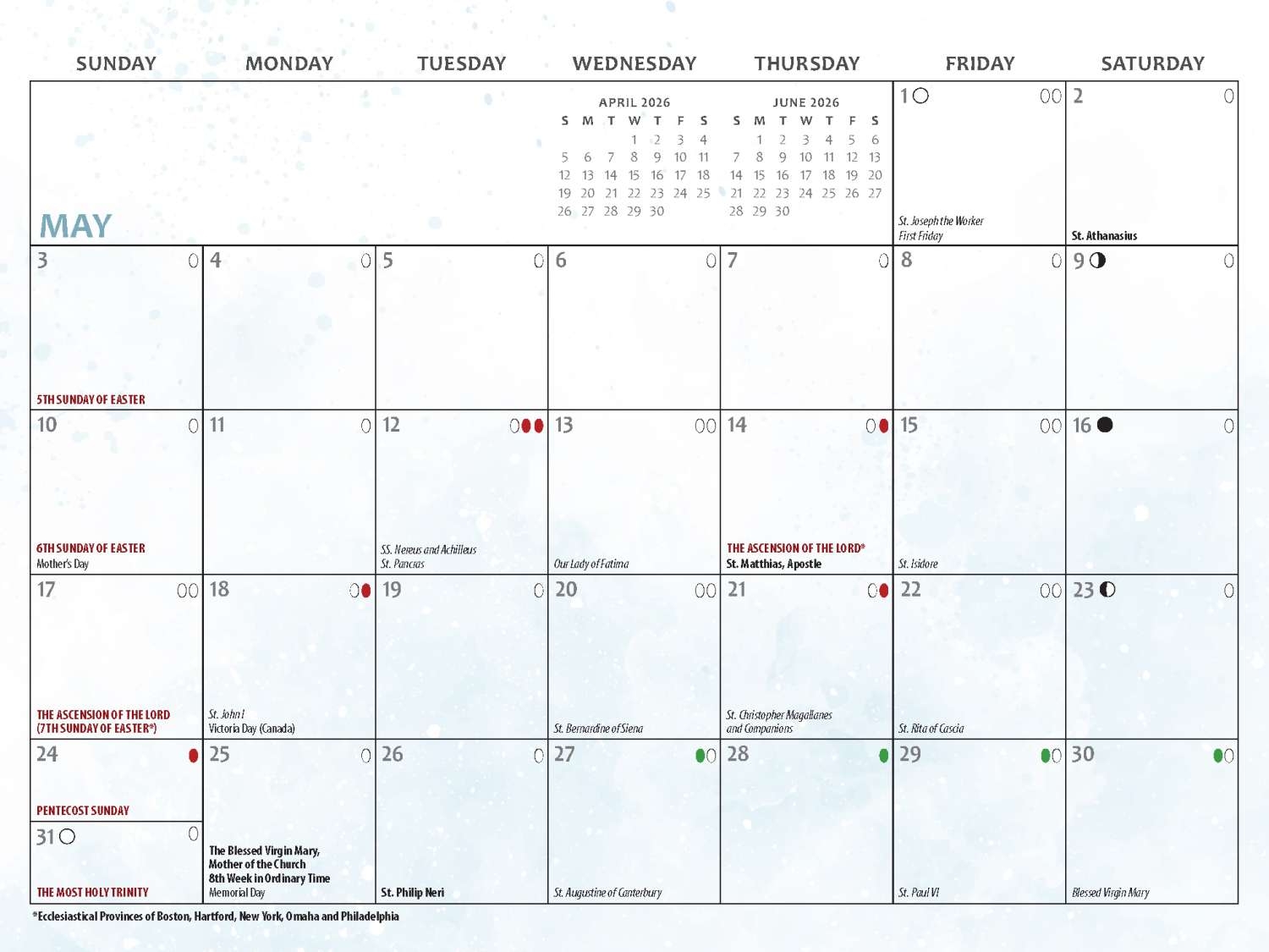 As you flip the pages of your Catholic calendar for May 2026, remember the importance of these dates and the significance they hold in the life of the Church. May this month be a time of grace, blessings, and deepened faith for you and your loved ones.