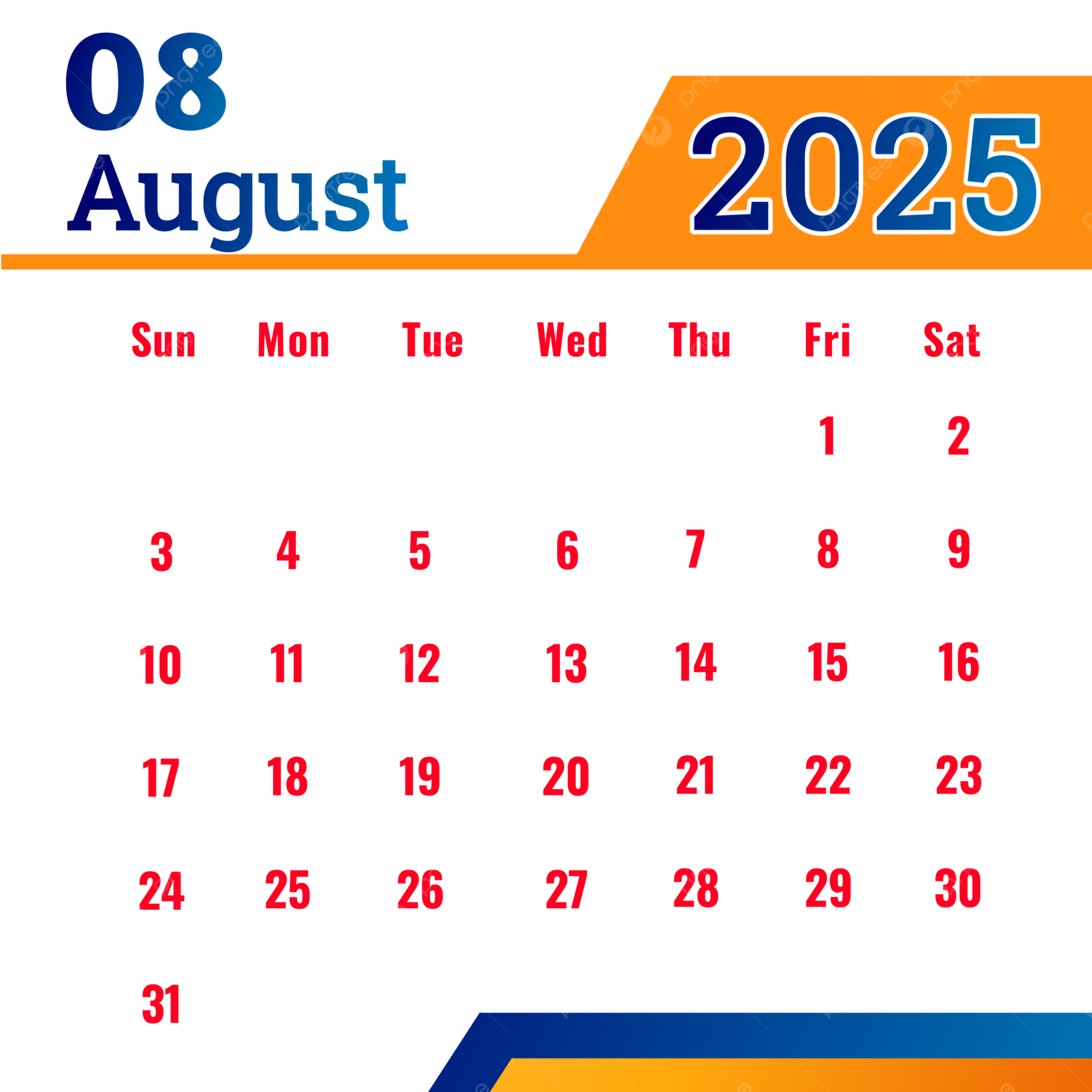 August 2025 Calendar August August 2025 Calendar 2025 PNG Transparent Clipart Image And PSD File For Free Download