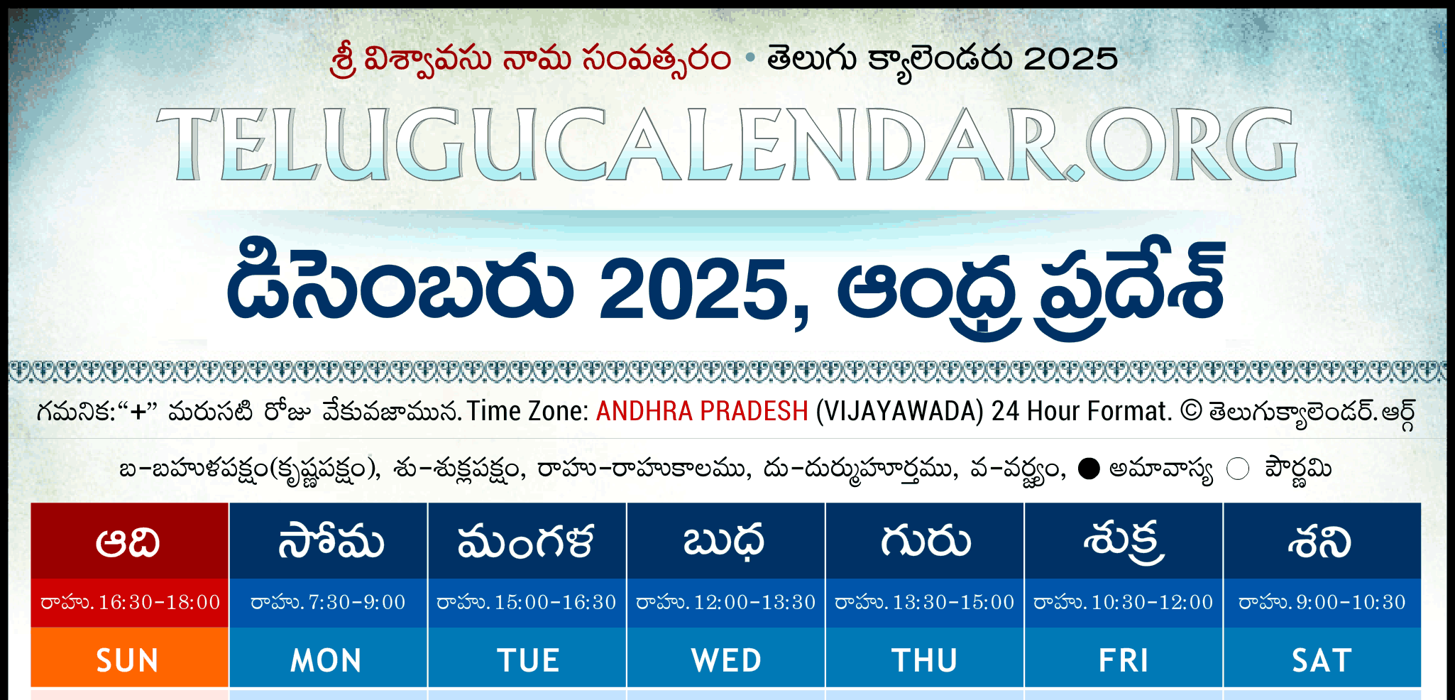 Telugu Calendar 2025 December