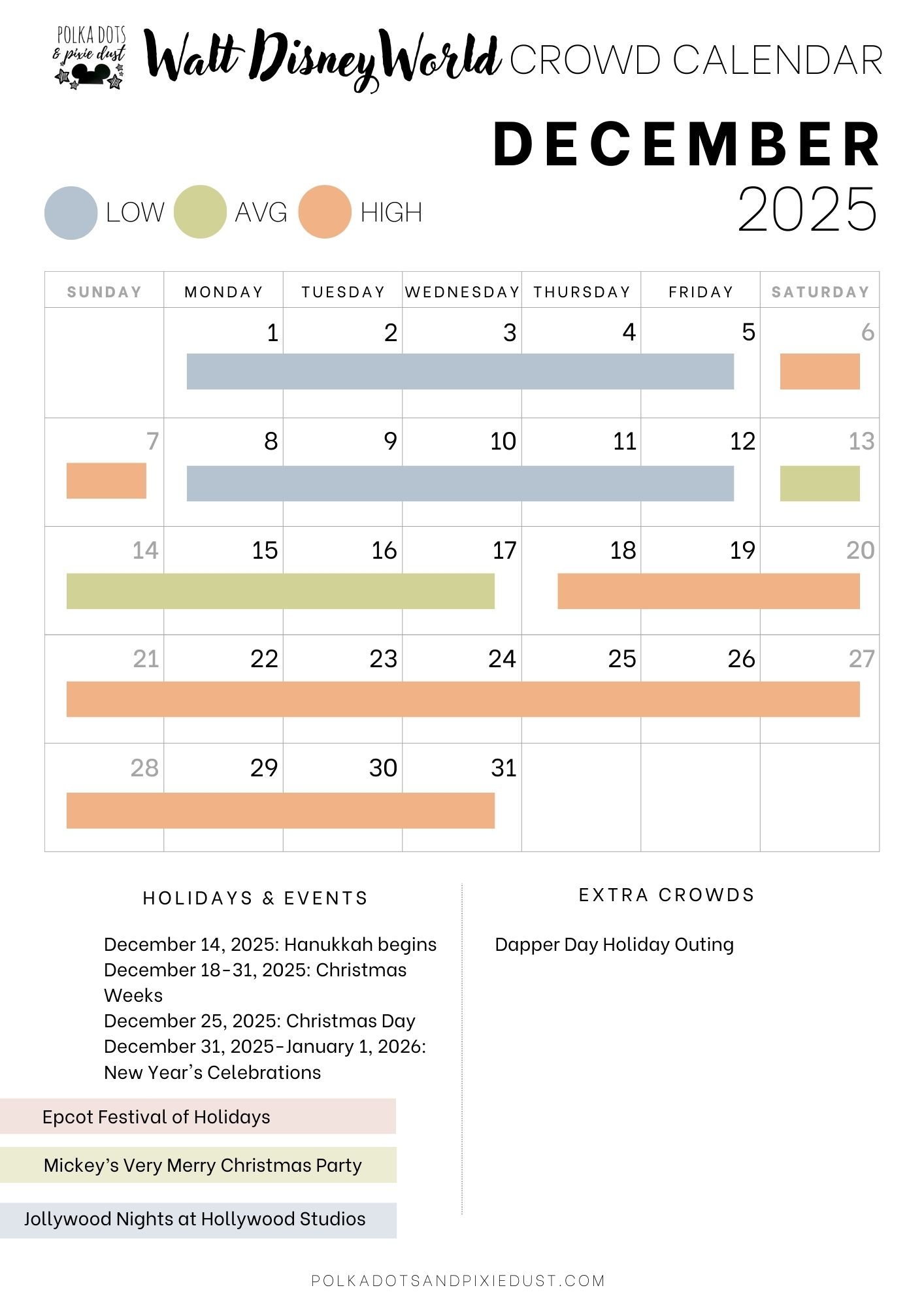 Disneyland Crowd Calendar December 2025