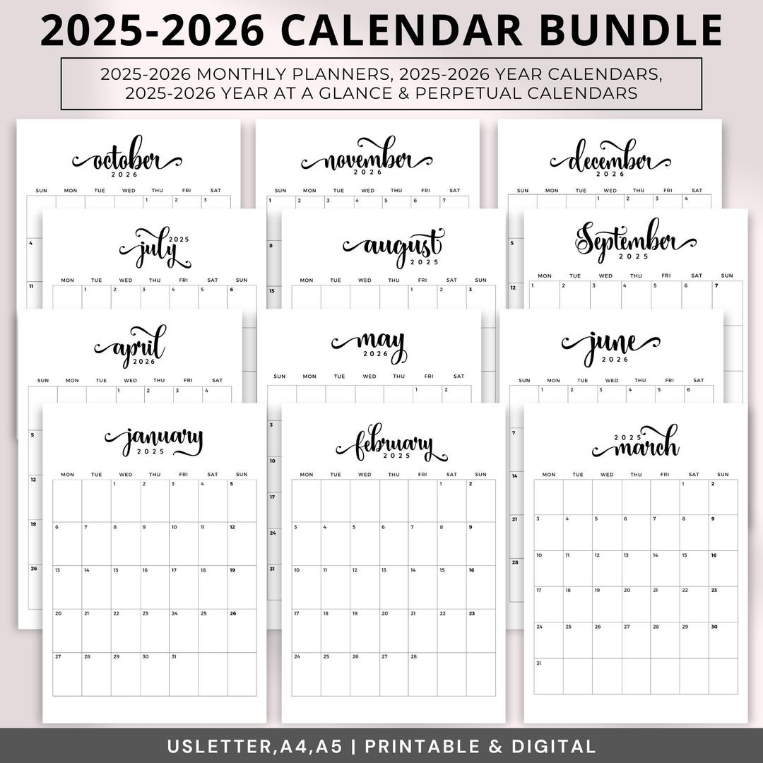 Monthly Planner 2025 2026 Printable 2025 2026 Calendar Bundle