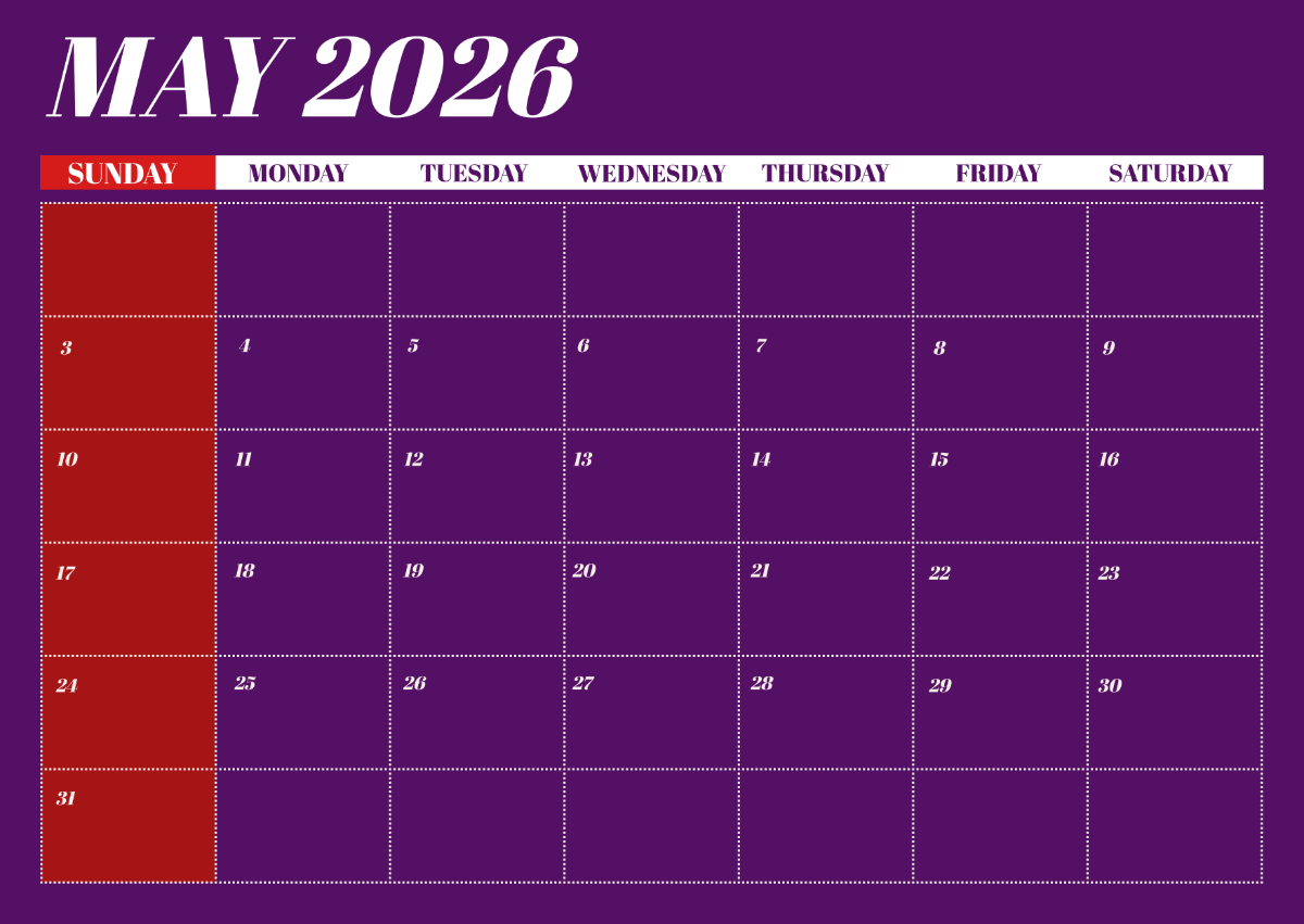 Editable May 2026 Calendar