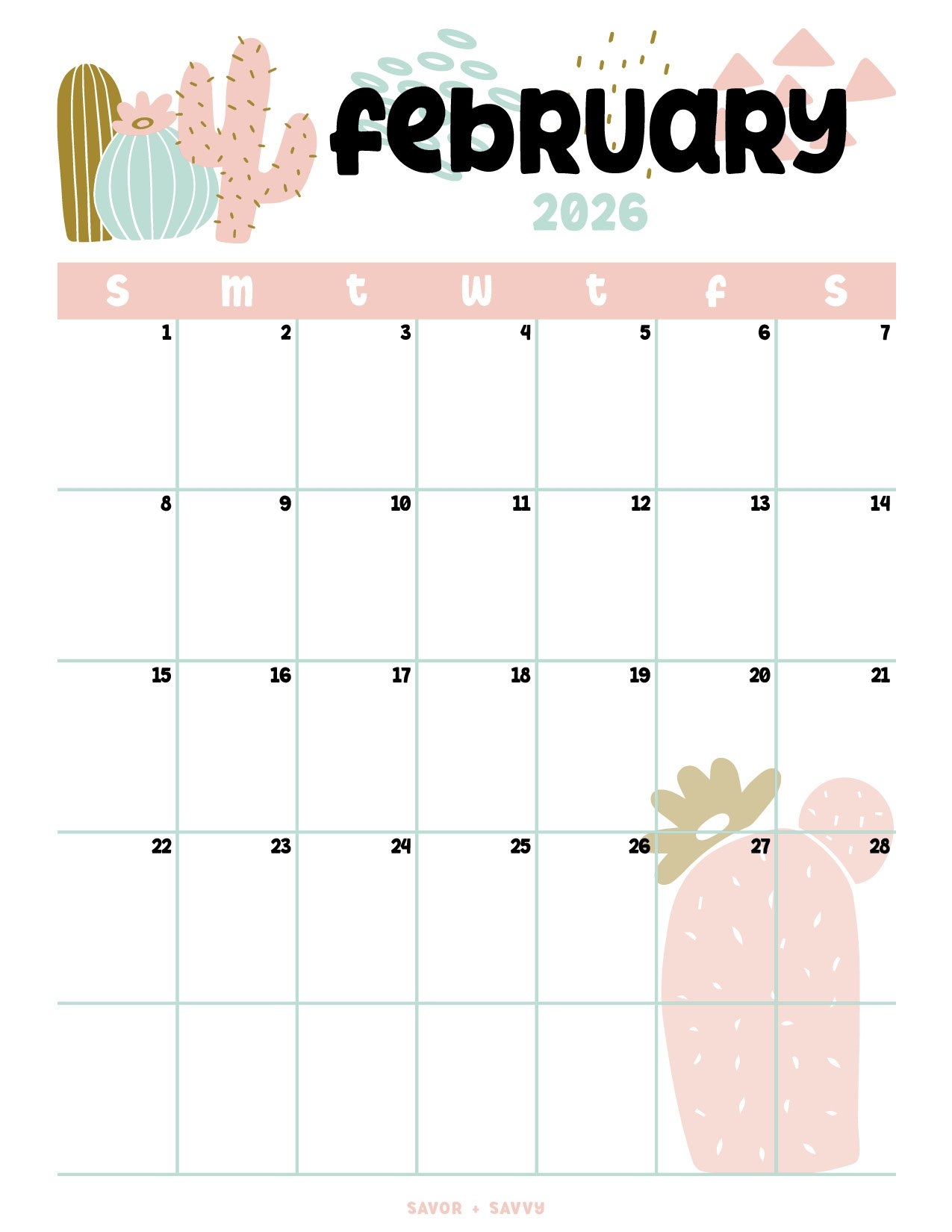 February 2026 Calendar Templates 14 Free Printables Savor Savvy