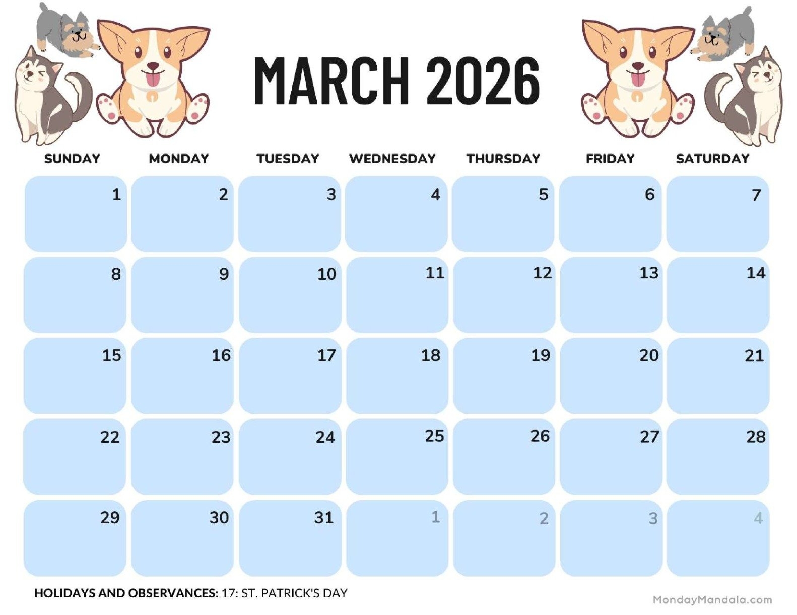 From birthdays to work meetings to doctor’s appointments, a general blue March 2026 calendar can help you juggle all your commitments with ease. Say goodbye to missed appointments and forgotten deadlines, and hello to a more organized and stress-free month.