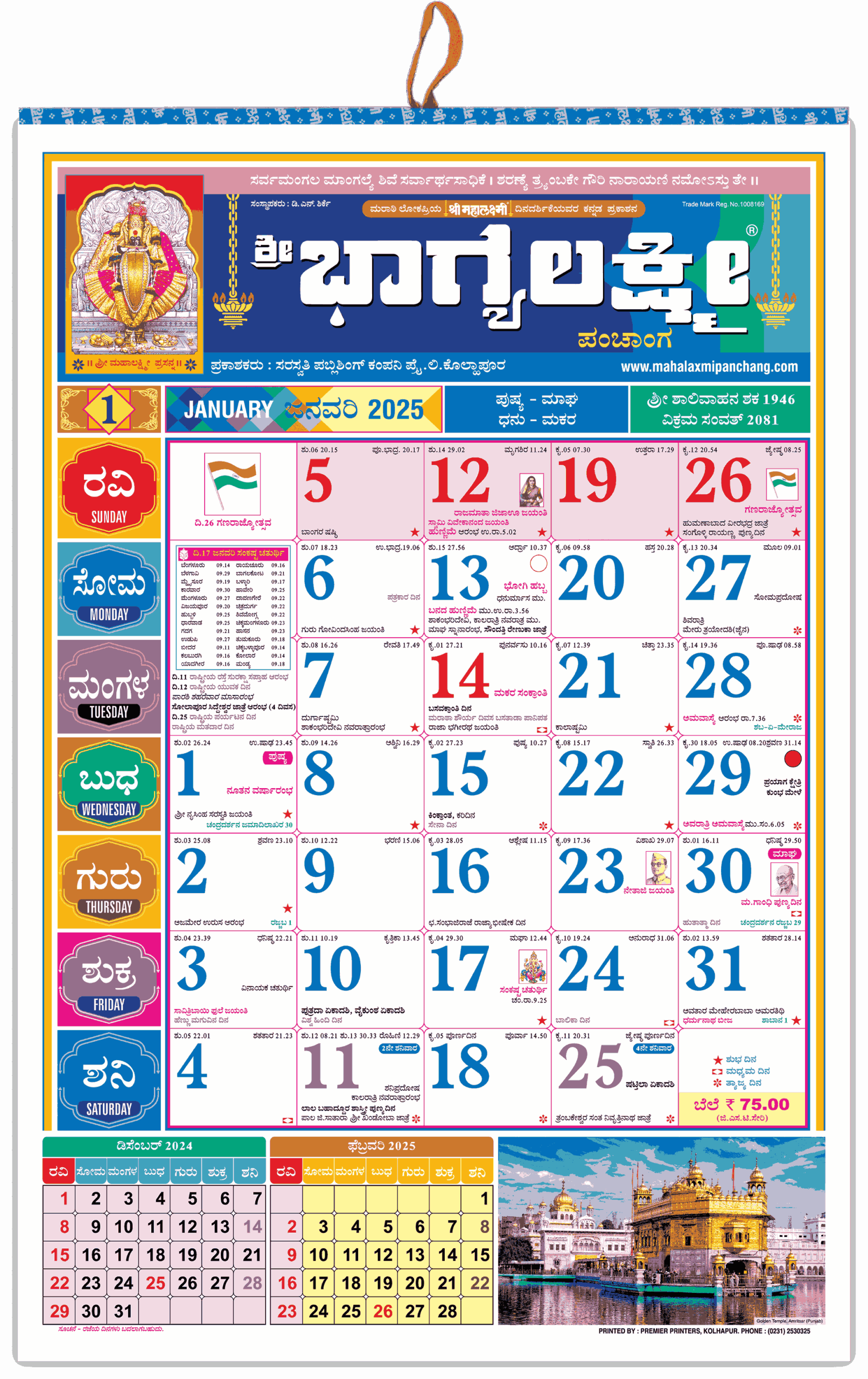 Bhagyalaxmi Kannada Super Calendar Buy Kannada Calendar