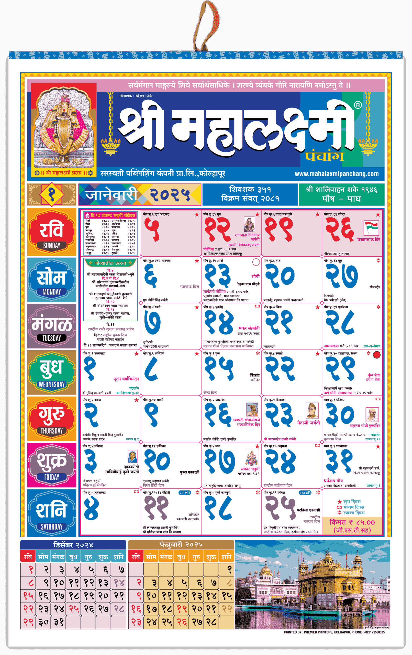 Marathi Calendar 2024 Mahalaxmi Panchang Buy Calendar 2024