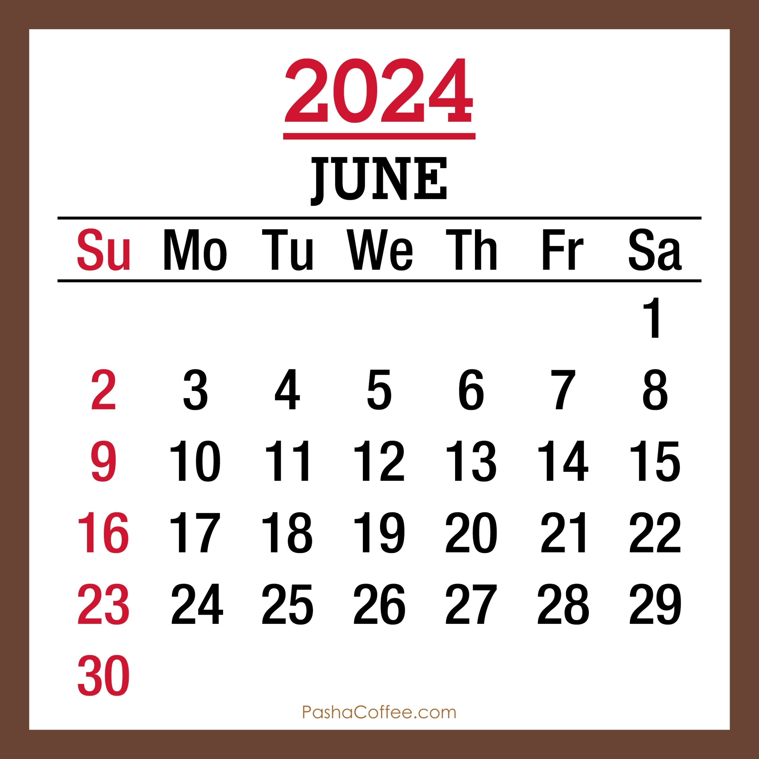 June 2024 Monthly Calendar Printable Free Brown Sunday Start
