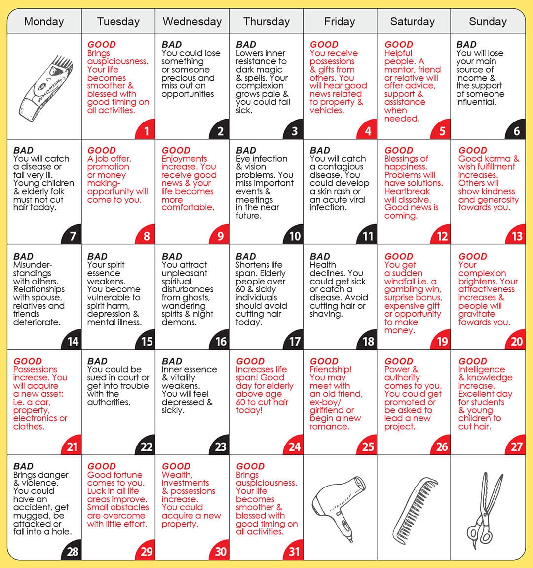 Good U0026 Bad Days To Cut Hair For April 2025 WOFS