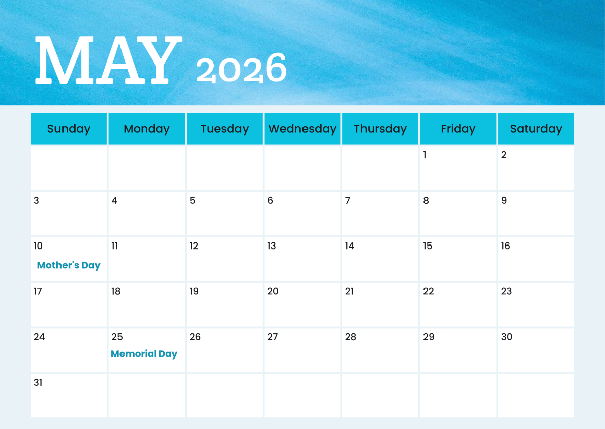 Take control of your month with a May 2026 editable calendar. Whether you prefer a digital format or a printable version, having a customizable calendar at your fingertips will help you manage your time effectively and make the most of each day.