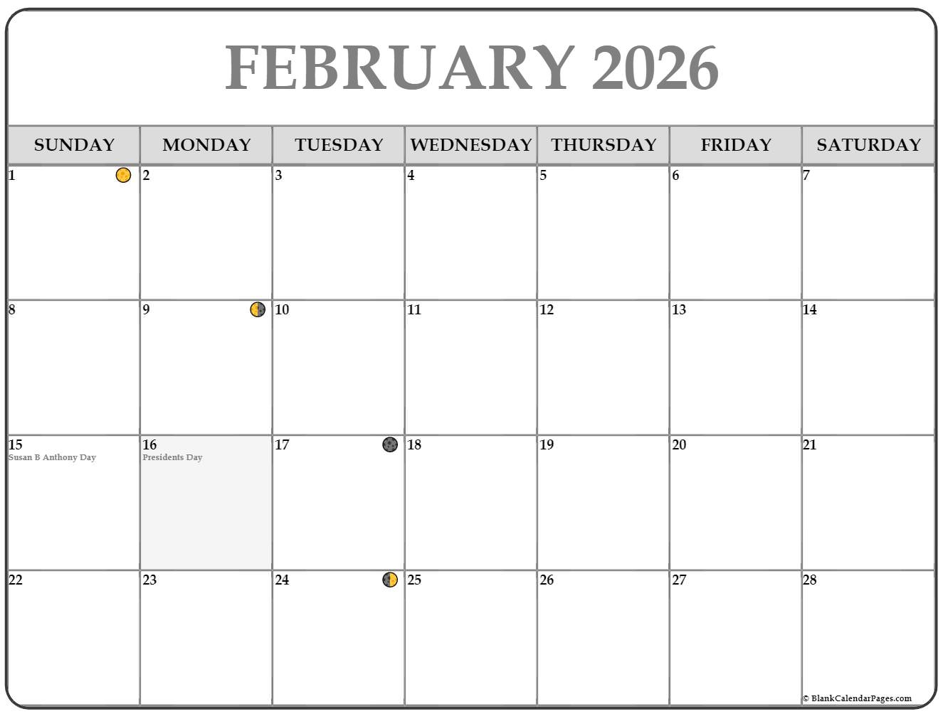 February 2026 Moon Phases Calendar Custom Calendar Maker
