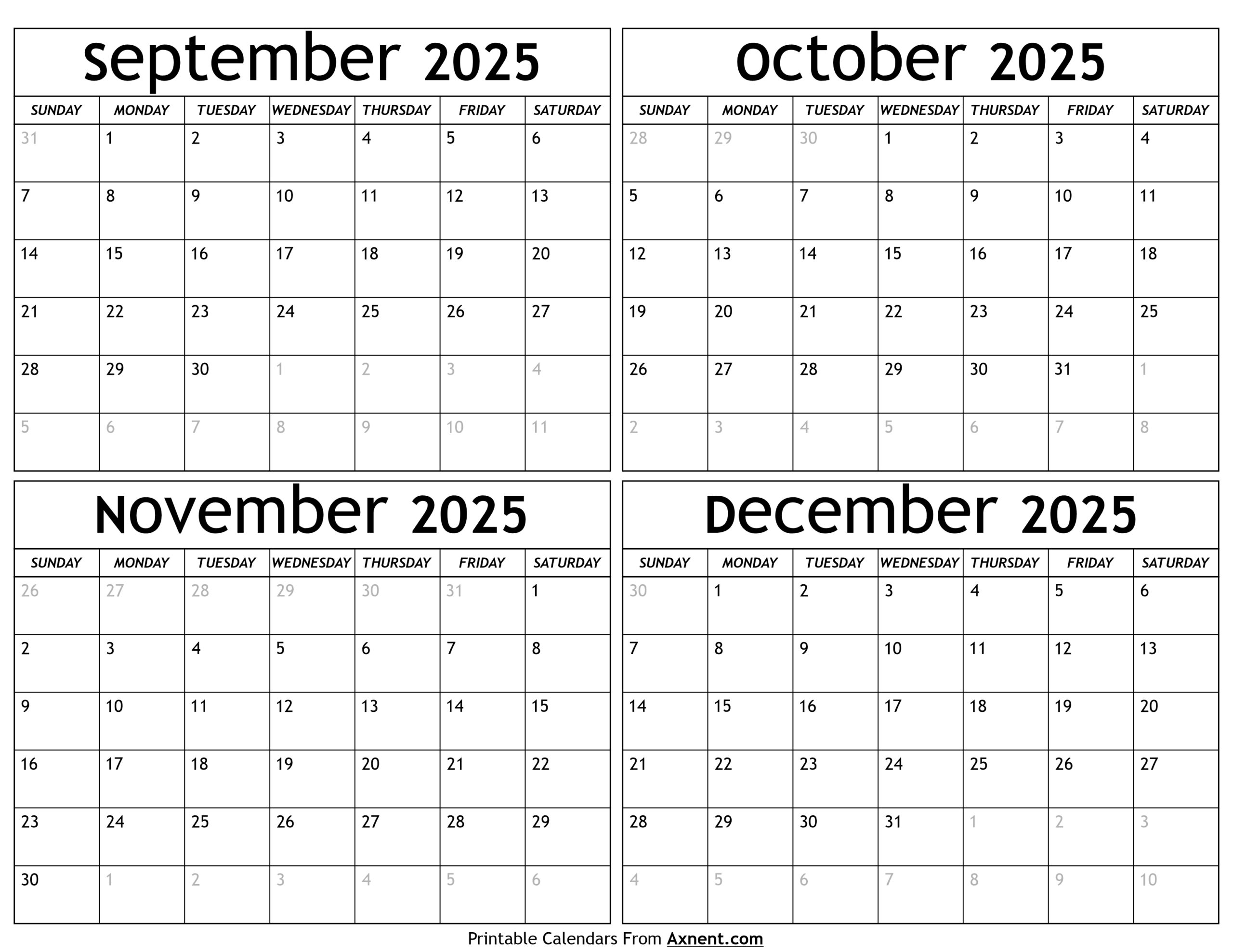 4 Month Calendar Printables September October November And December 2025 EntheosWeb