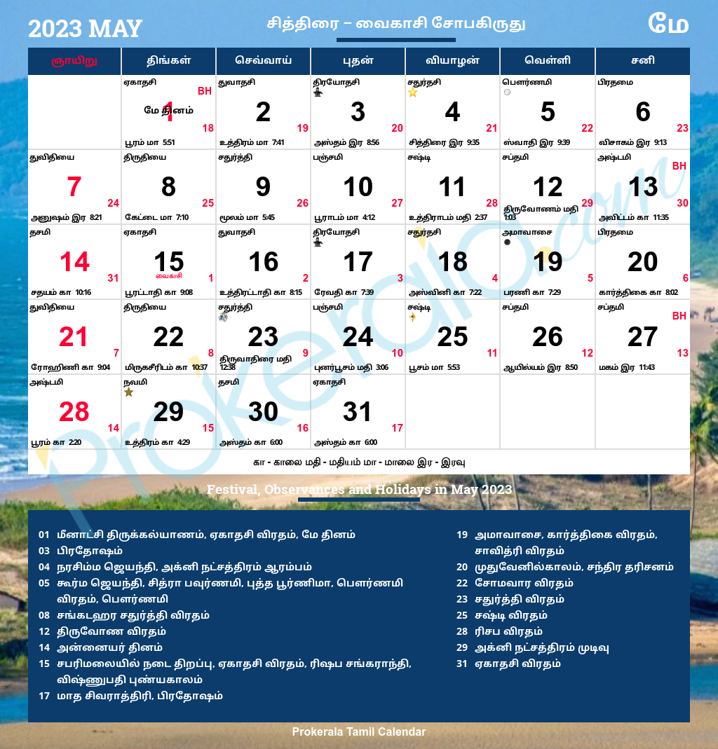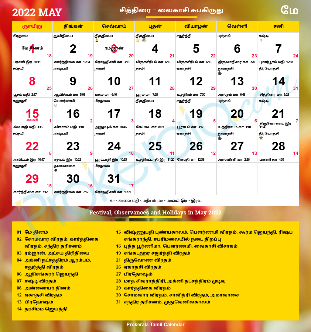 May 2026 is an exciting month in the Tamil Calendar as it marks the beginning of summer. The month is filled with various festivals and auspicious days that hold significance in Tamil culture.
